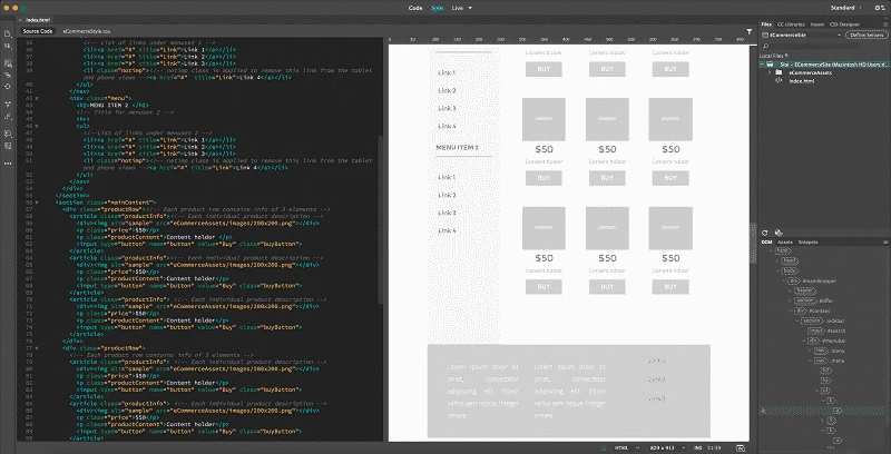 El programa está equipado con todas las herramientas básicas para diseñar y desarrollar un sitio web, como Live View para verificar las páginas antes de publicarlas, CSS3 y HTML5 para aplicar varios estilos adecuados a las dimensiones de la pantalla, el panel Business Catalyst para editar y crear sitios de comercio electrónico, FTP para guardar y cargar archivos y Adobe Creative Suite para ahorrar tiempo y trabajo.